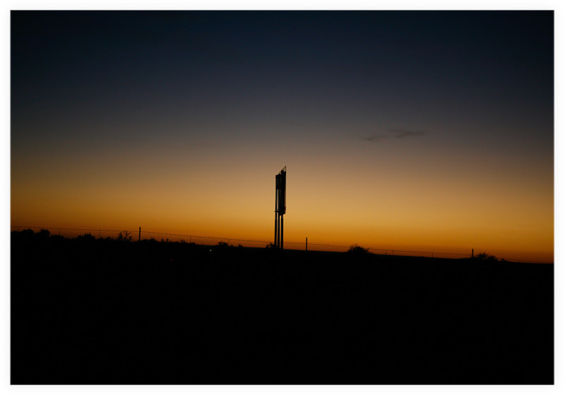 Trekking across historic Route 66, sun beginning to drop |