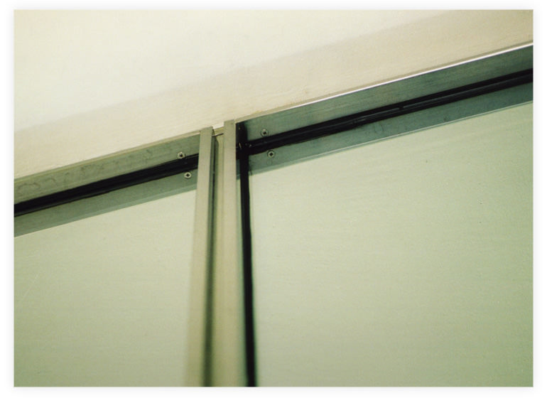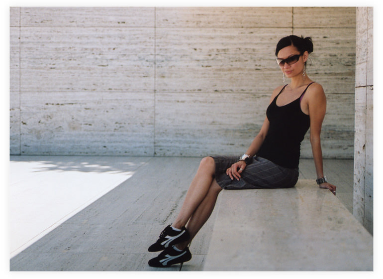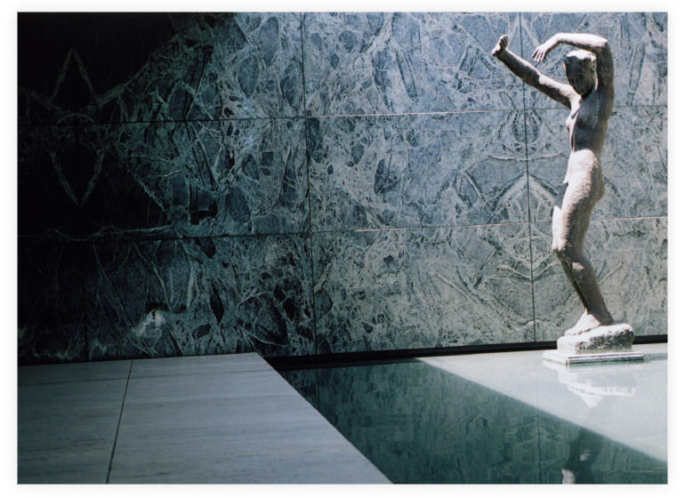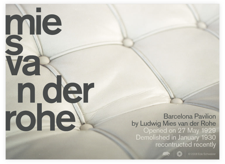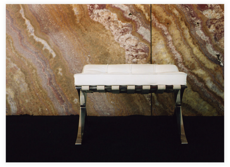 Barcelona foot stool designed specially for this space, by Mies van der Rohe |