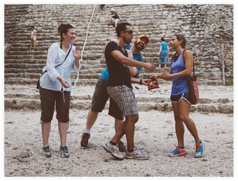 Mick, Marisol, Brandie, Ede – atop the Ixmoja pyramid |